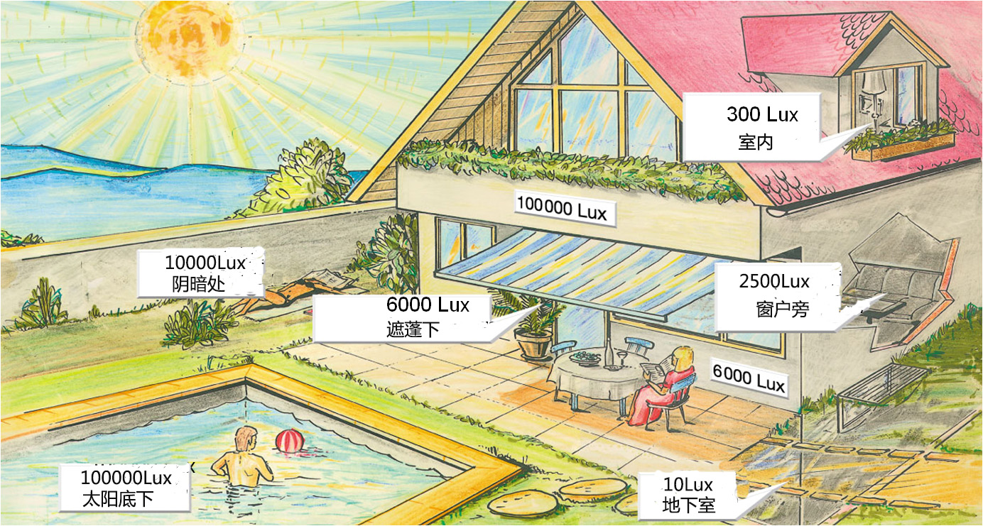 照度是描述照射到某一表面的光通量的參數(shù)。它表示某一場所的明亮度。