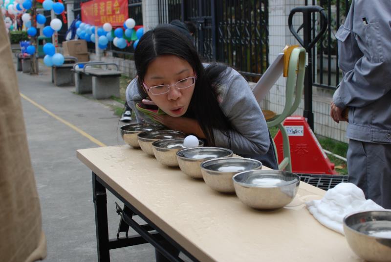 “比誰(shuí)力氣大”游戲,選手們要在水杯上吹乒乓球,需要連續(xù)通過(guò)6個(gè)且不能跳杯,若是掌握不好吹的力度,乒乓球則會(huì)失去重心偏離水杯。只有一氣呵成順利通過(guò)的選手才能收獲一枚難得的印章。