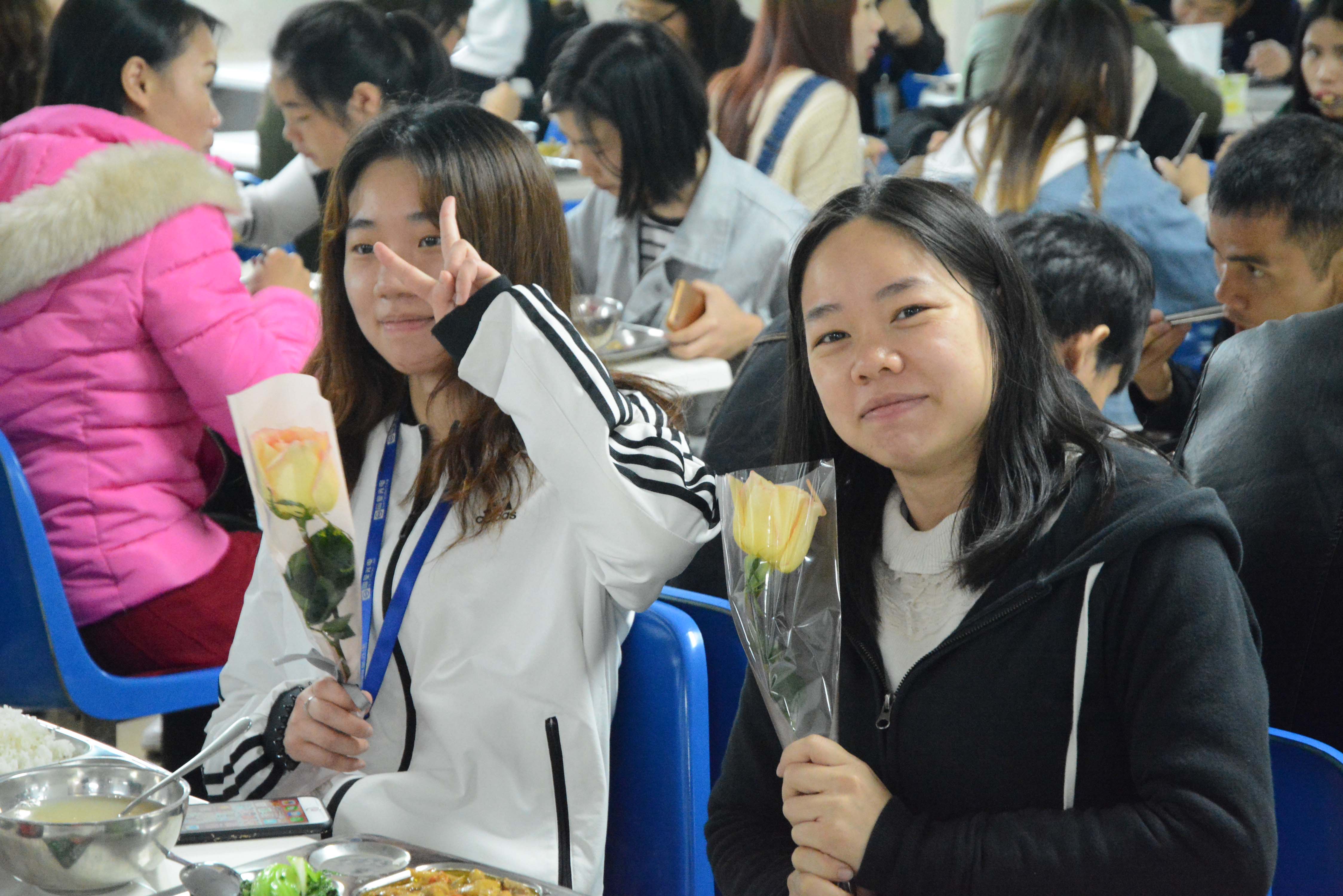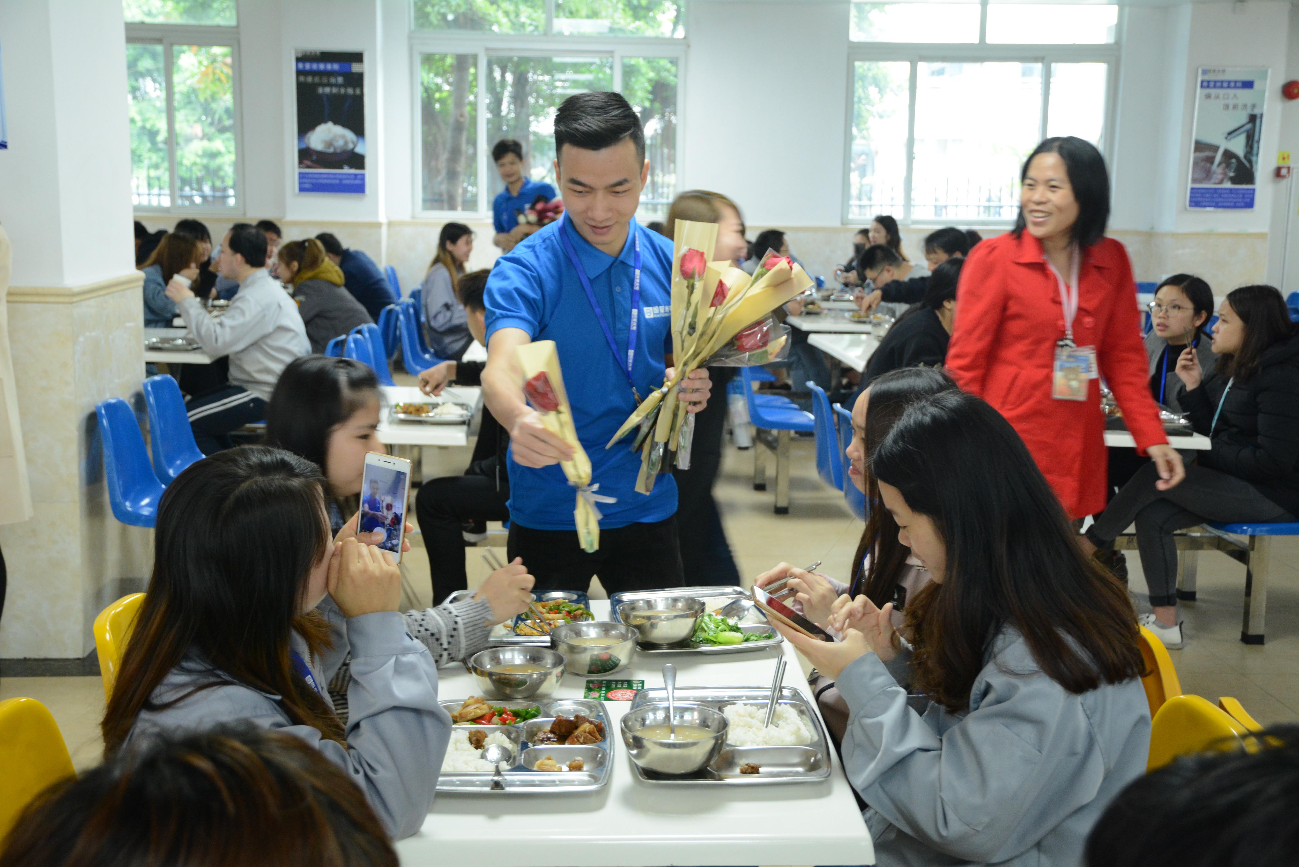 在中午十一點,女同事們陸續(xù)前往飯?zhí)镁筒??!芭窆?jié)快樂!”,突然一枝鮮花送到女同事的面前,原來是我們國星的男神團特意為每一位女同事送上鮮花。收到鮮花的女同事都是一臉幸福的模樣,甜蜜又浪漫。最美的鮮花送給最美的女神,所有國星女同事都是我們心目中最美的女神!