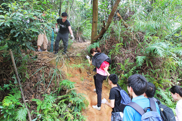 8:45,全體學(xué)員在廣州豬仔山下集合。領(lǐng)隊(duì)為大家詳細(xì)講解了在登山徒步的注意事項(xiàng),并帶領(lǐng)大家做了熱身運(yùn)動,登山徒步正式開始。沿途山路陡峭、地形復(fù)雜,但絲毫沒有阻擋學(xué)員們迎難而上、挑戰(zhàn)自我的信心和勇氣,學(xué)員們相互鼓勵、相互幫助,一步一步往上爬,一步一步越爬越高,充分展示了國星人“團(tuán)結(jié)友愛、互助互愛、頑強(qiáng)拼搏”的企業(yè)文化精神。