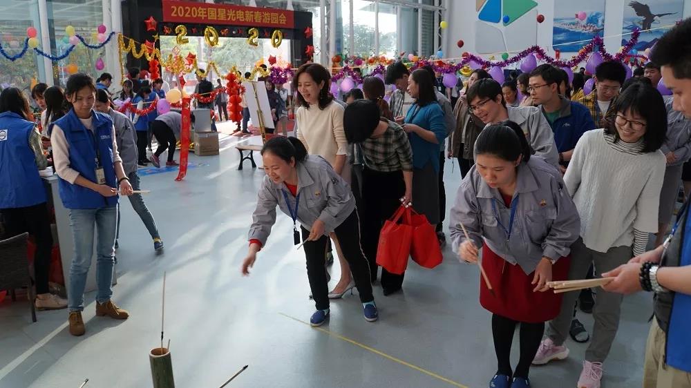 下午4點,伴隨著熱情歡快的音樂,國星光電新春游園會正式開始了!今年的新春游園,把活動現(xiàn)場布置得多彩喜慶,并精心設(shè)置了五個游戲項目。不僅考驗參與者的體能和智力,還充滿了趣味性。