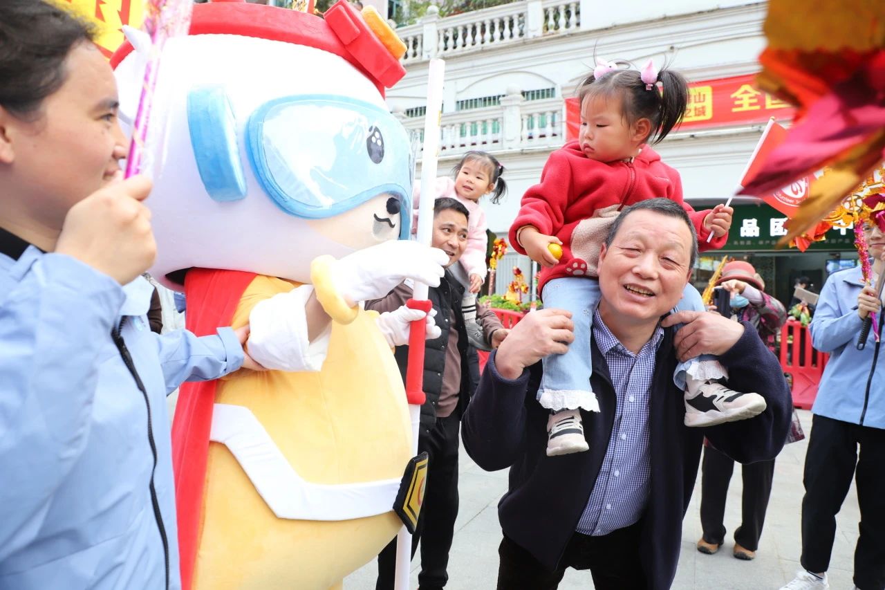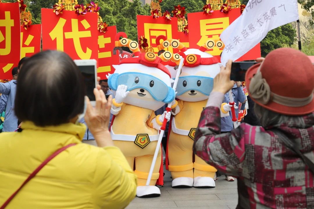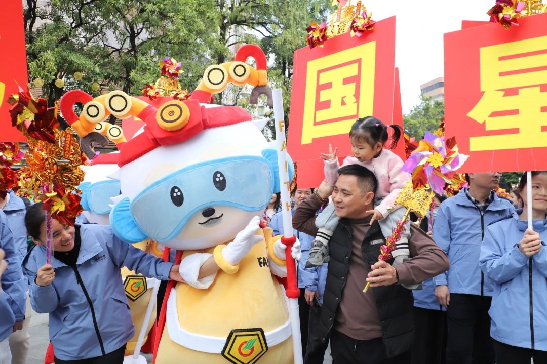 “大晟”來啦 創(chuàng)意方陣巡游 在春意涌動的通濟橋上,巡游以舞龍、醒獅開道,國星舞龍團隊舞出朝氣 、舞出精彩、舞出文化,率先贏得市民的陣陣掌聲。緊接著,國星光電方陣以一抹清新亮眼的“國星藍”成為焦點。50名隊員身著統(tǒng)一淺藍色沖鋒衣,步伐昂揚間盡顯國企隊伍的精氣神。方陣核心位置,廣晟控股集團、國星光電司旗交相輝映,核心骨干、青年職工手中高高舉起“晟行FAITH 攀高奮進”“敢干敢拼敢創(chuàng)”等企業(yè)文化標語,“時代國星 光芒有你”的宣言擲地有聲。 最引人注目的是廣晟控股集團企業(yè)文化IP“大晟”人偶——這個以傳統(tǒng)文化孫悟空為原型、LED燈珠為靈感設計的科技感吉祥物,時而與市民擊掌互動,時而帶領方陣高呼口號,用萌趣形象演繹著“科技溫度”。這場傳統(tǒng)民俗與工業(yè)美學的創(chuàng)新對話,是廣晟控股集團、"國星智造"品牌力的時尚表達,更是佛山制造向“世界科技+現(xiàn)代工業(yè)”跨越的宣言。 “大晟”駕到與民眾親密互動
