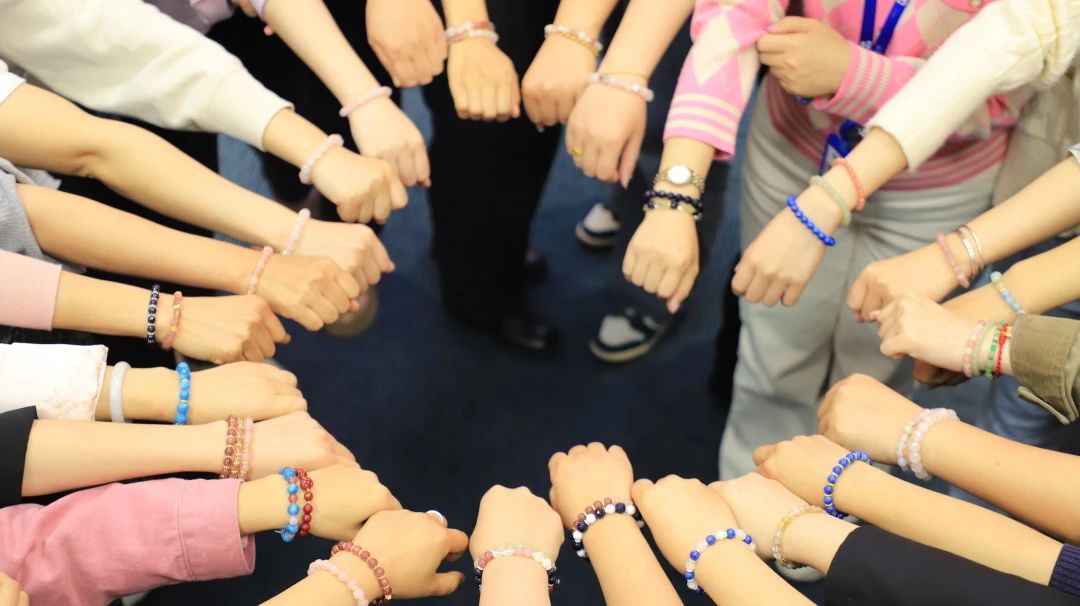 大家充分發(fā)揮創(chuàng)意,精心挑選珠子,搭配色彩,將一顆顆散珠串聯(lián)成飽含心意與個性的飾品。制作過程中,大家相互交流經(jīng)驗、分享創(chuàng)意,歡聲笑語不斷,氣氛溫馨融洽。