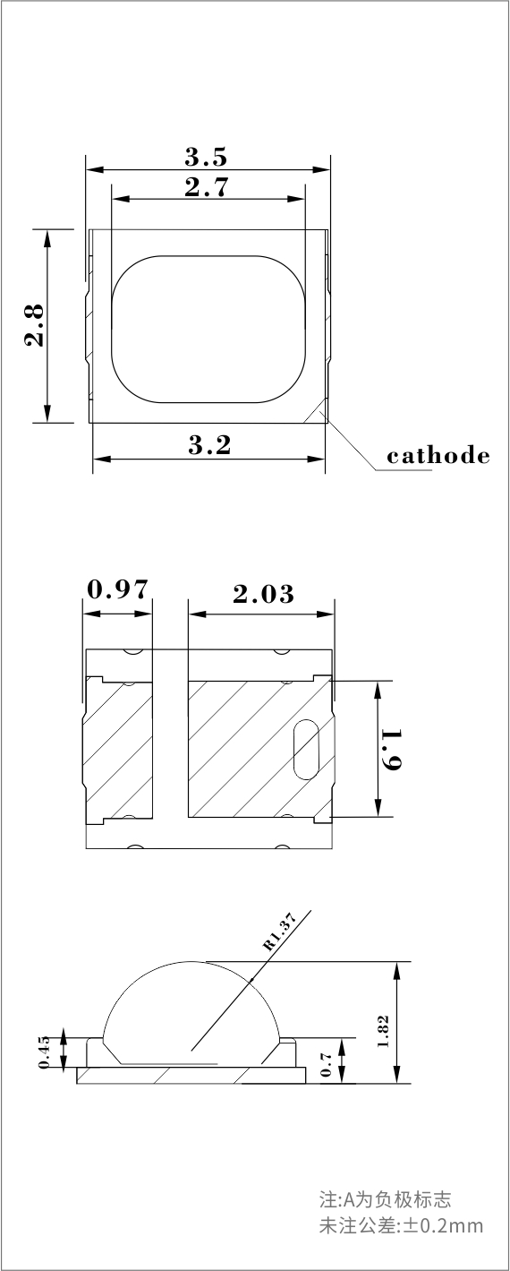 | 產(chǎn)品型號 | 峰值波長(nm) | IF(mA) TEST | 光功率(mW) | VF (V) Typ. |