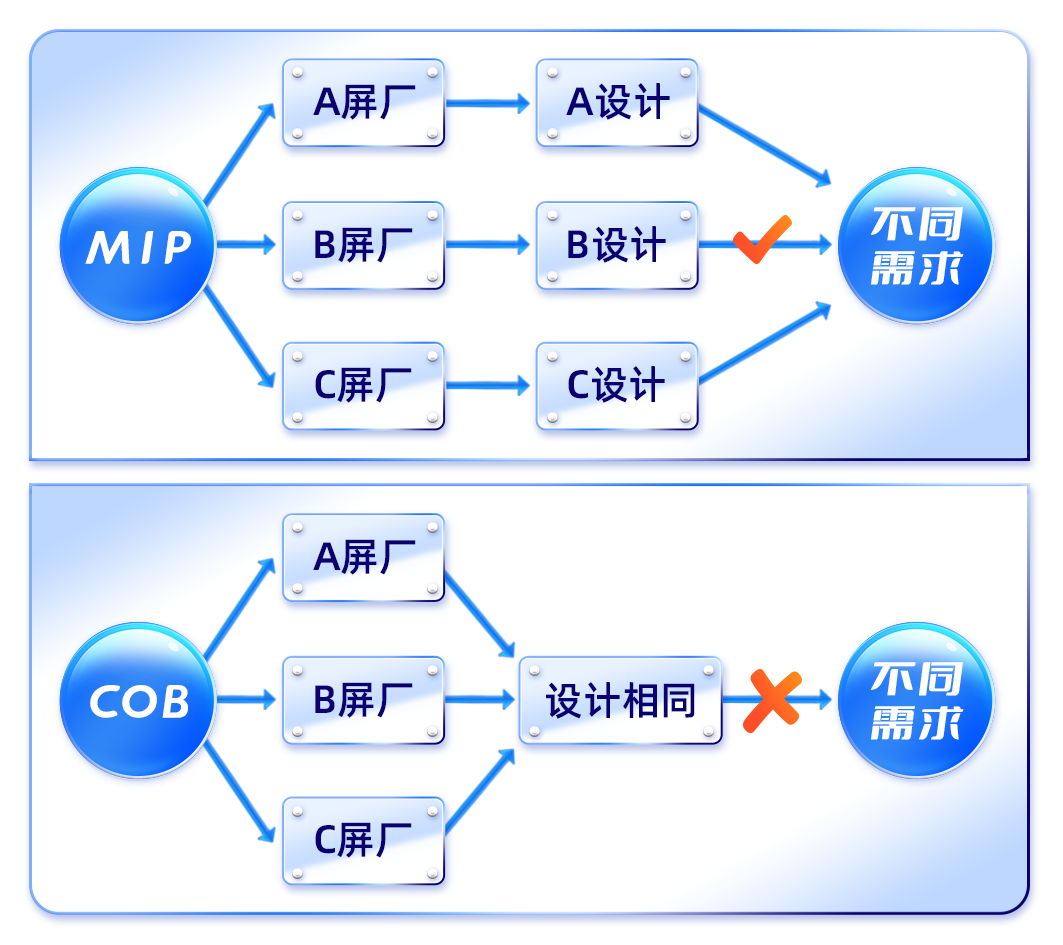 5.MIP器件在整個(gè)產(chǎn)業(yè)鏈中擁有更好的適配性,應(yīng)用更加靈活,可根據(jù)客戶需求制定不同的產(chǎn)品方案,能夠兼容當(dāng)前設(shè)備和下游貼裝設(shè)備,更具產(chǎn)業(yè)化優(yōu)勢(shì)。