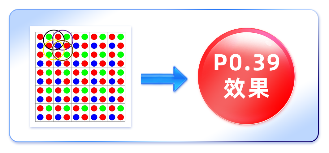 2.可疊加虛擬像素技術(shù),打破實(shí)像素極限,最低可實(shí)現(xiàn)P0.39間距顯示效果。