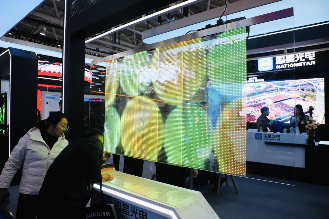 ▍必看點(diǎn)三:燈驅(qū)合一方案突圍,通透質(zhì)感打造顯示“新”意 在國星光電展位上,最具創(chuàng)意的展品當(dāng)屬位于展區(qū)門口以及內(nèi)側(cè)多處安裝的LED透明屏。其炫彩動(dòng)態(tài)畫面與通透質(zhì)感深度融合,不僅突破傳統(tǒng)空間界限,更打造沉浸式科技感體驗(yàn)。