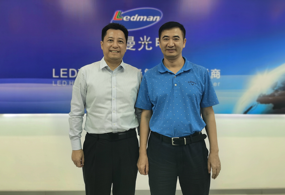 國星光電董事長王廣軍(右)與雷曼光電董事長李漫鐵合影留念