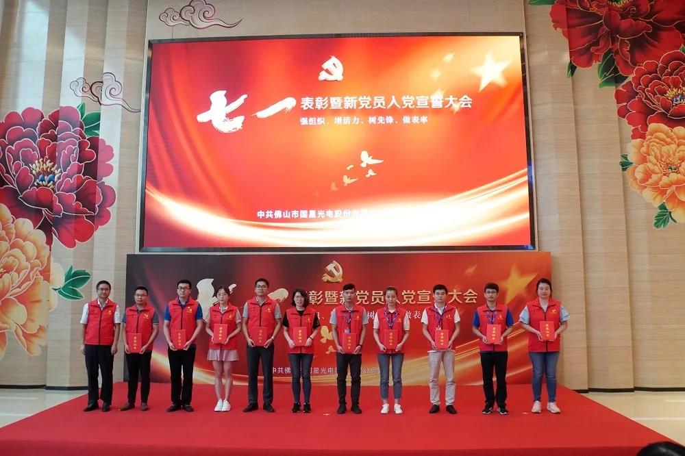 為慶祝中國共產黨成立99周年,深入貫徹落實黨的十九大精神,扎實推進《關于在廣晟公司系統(tǒng)開展“五個五”黨建品牌創(chuàng)建活動的實施方案》,擦亮“國星藍·黨旗紅”之“高清顯示”黨建品牌,在廣晟公司黨委的堅強領導下,7月1日上午,國星光電黨委在公司大堂召開了“七一”表彰暨新黨員入黨宣誓大會。