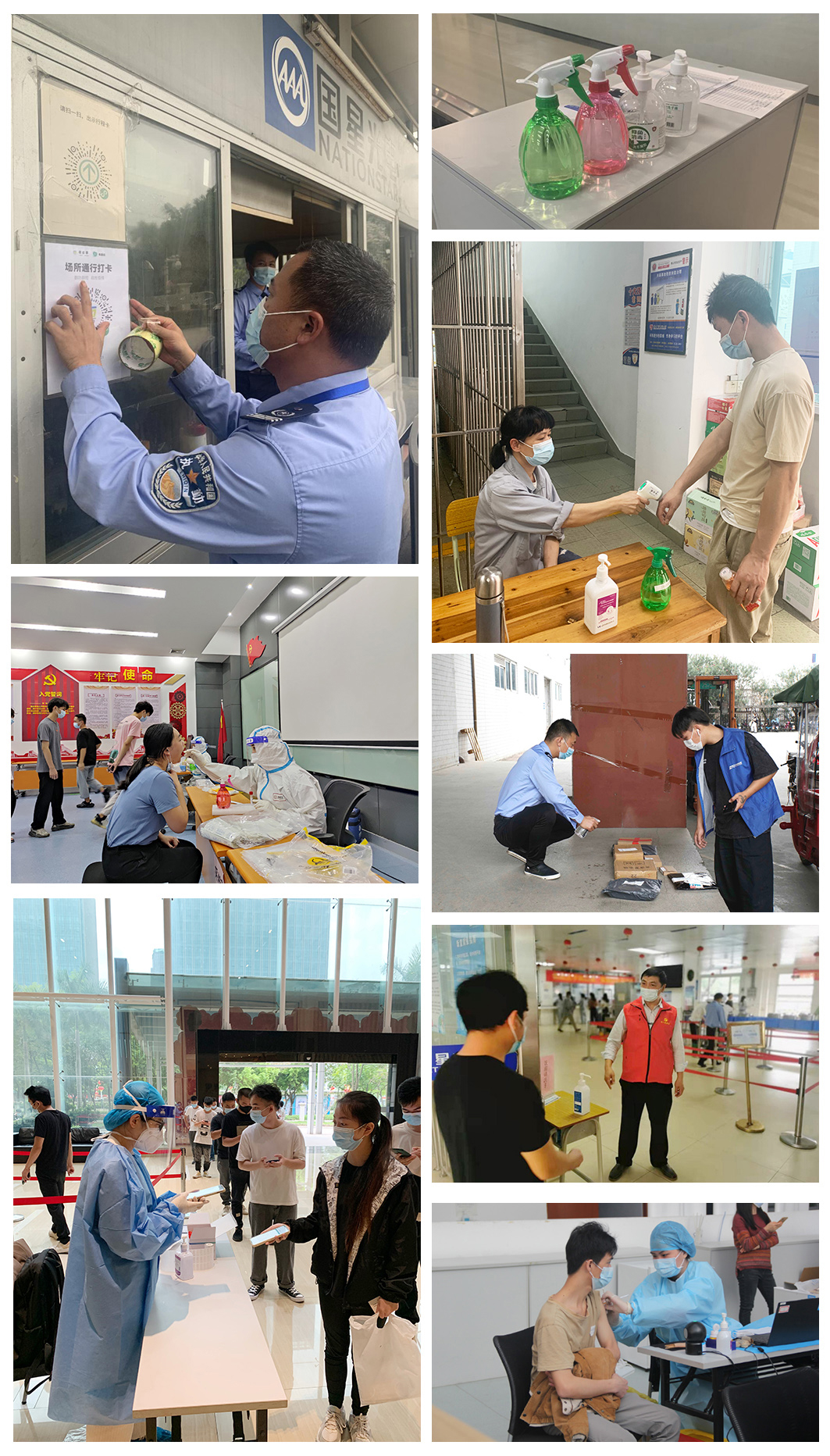 在新一輪疫情剛發(fā)生之時(shí),國(guó)星光電疫情防控工作小組堅(jiān)守崗位,迅速啟動(dòng)應(yīng)急指揮機(jī)制,深入防控防疫和生產(chǎn)經(jīng)營(yíng)一線,加強(qiáng)對(duì)疫情防控工作措施的實(shí)施和監(jiān)督,嚴(yán)格落實(shí)早發(fā)現(xiàn)、早報(bào)告、早隔離、早治療的“四早”要求,按照“內(nèi)防反彈和擴(kuò)散、外防輸入和輸出”的防控策略,從核酸檢測(cè)、人員摸排、值班值守、應(yīng)急處置、信息報(bào)送等全方位抓緊抓細(xì);公司廣大黨員干部沖鋒在前、戰(zhàn)斗在先,帶頭落實(shí)落細(xì)疫情防控各項(xiàng)工作要求,在大門口、飯?zhí)?、宿舍等區(qū)域值班值守,讓黨旗在公司疫情防控一線高高飄揚(yáng)。國(guó)星光電職工志愿者響應(yīng)號(hào)召,在他們顧大局聽指揮,主動(dòng)參加志愿服務(wù),身體力行,為公司防疫貢獻(xiàn)力量。